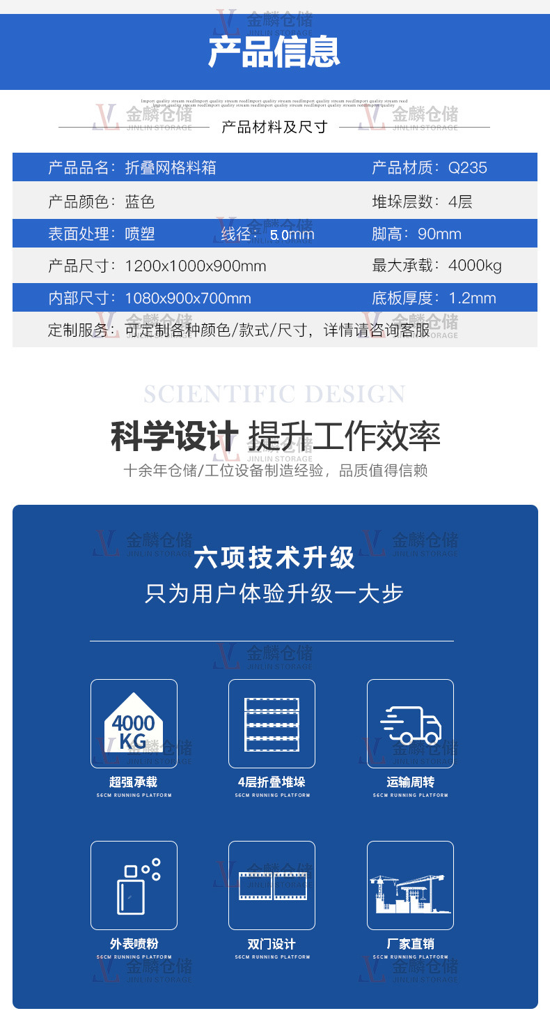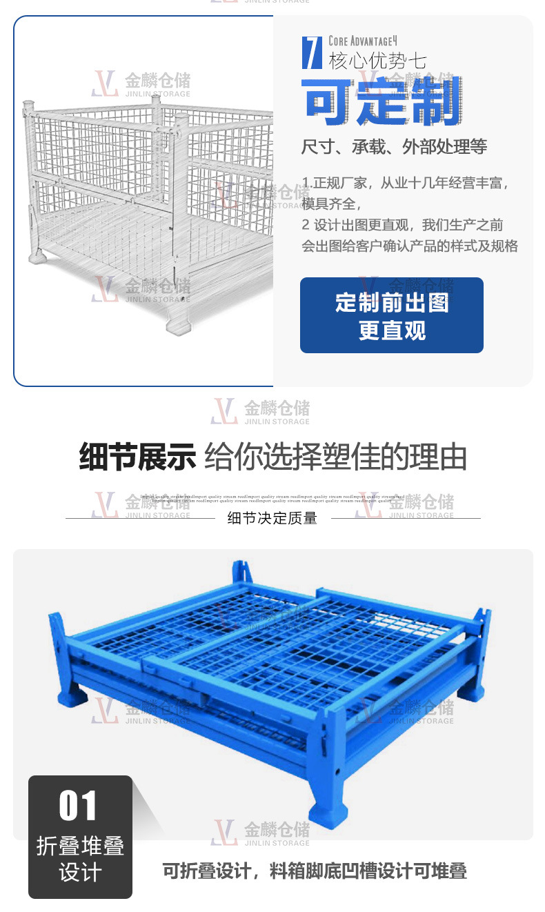 詳情折疊式倉(cāng)儲(chǔ)籠,具有存放物品容量固定、堆放整潔、存放一目了然、便于庫(kù)存清點(diǎn)等優(yōu)點(diǎn),同時(shí)也提高了倉(cāng)儲(chǔ)空間的有效利用率。此外,該產(chǎn)品堅(jiān)固耐用、運(yùn)輸便捷、能重復(fù)使用,能有效降低倉(cāng)儲(chǔ)企業(yè)的人力消耗及包裝成本。隨...