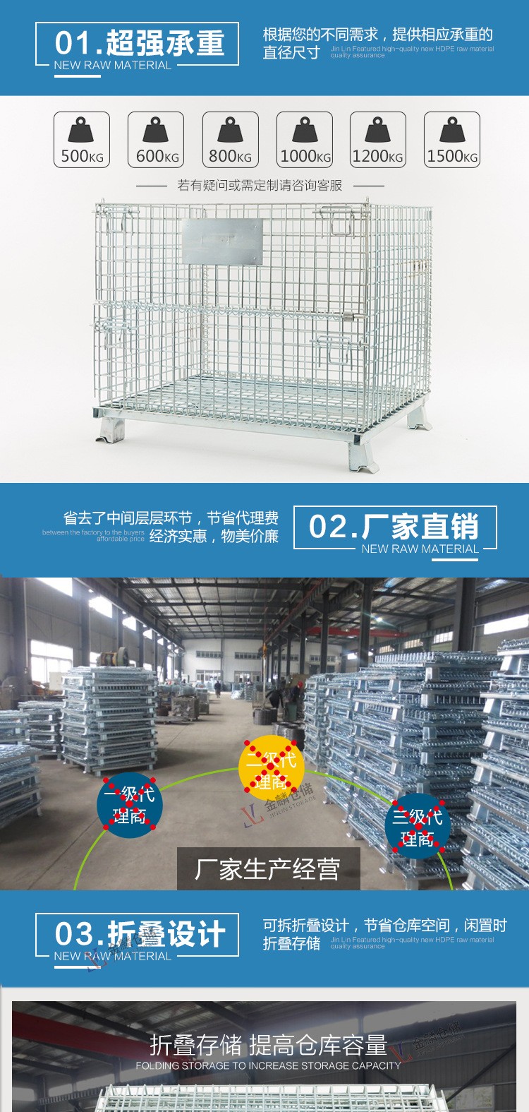 折疊式倉儲籠,具有存放物品容量固定、堆放整潔、存放一目了然、便于庫存清點等優(yōu)點,同時也提高了倉儲空間的有效利用率。此外,該產(chǎn)品堅固耐用、運輸便捷、能重復(fù)使用,能有效降低倉儲企業(yè)的人力消耗及包裝成本。隨...